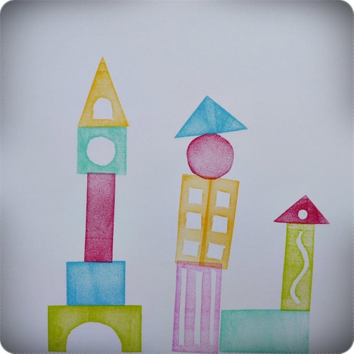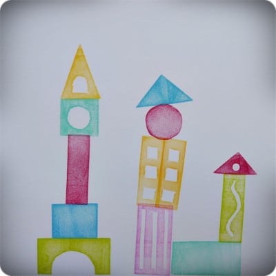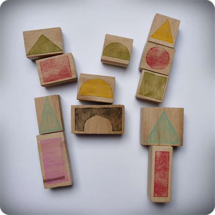 Fertigt euch als erstes aus der Pappe ein paar Schablonen mit typischen Formen von Bauklötzen an. Dafür sind Zirkel und Geodreieck hilfreich!