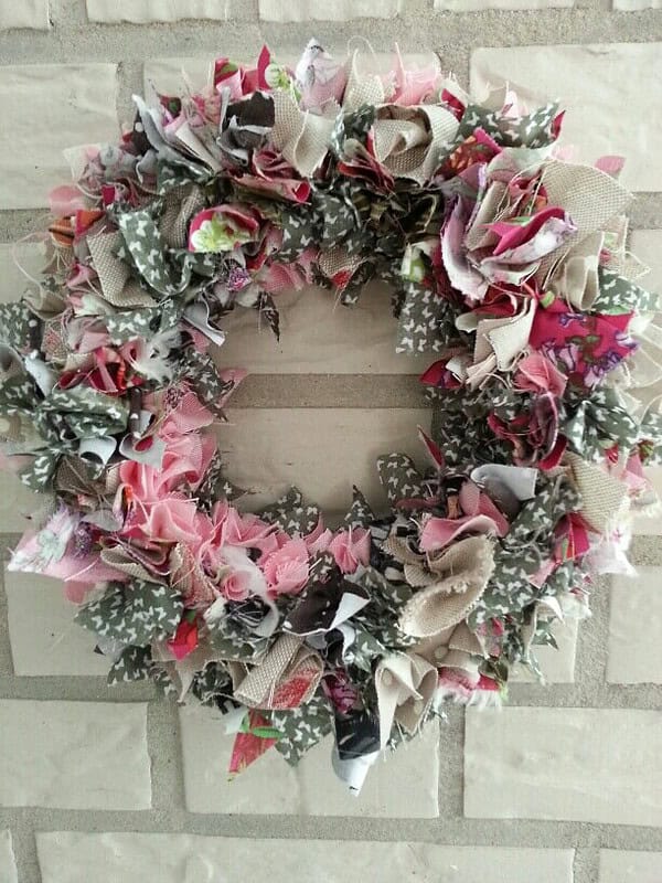 Darunter ist ein Styroporkranz:-) In diesen werden die Stoffstücke hineingepiekst.