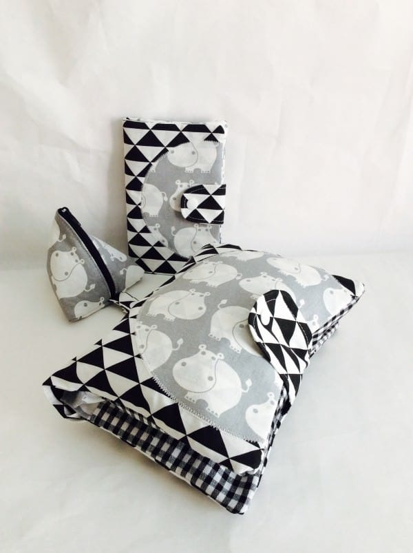 ‚Es muss ja nicht immer kunterbunt sein‘ dachte ich mir und habe diese Stoffe für mein Babyset ausgesucht.