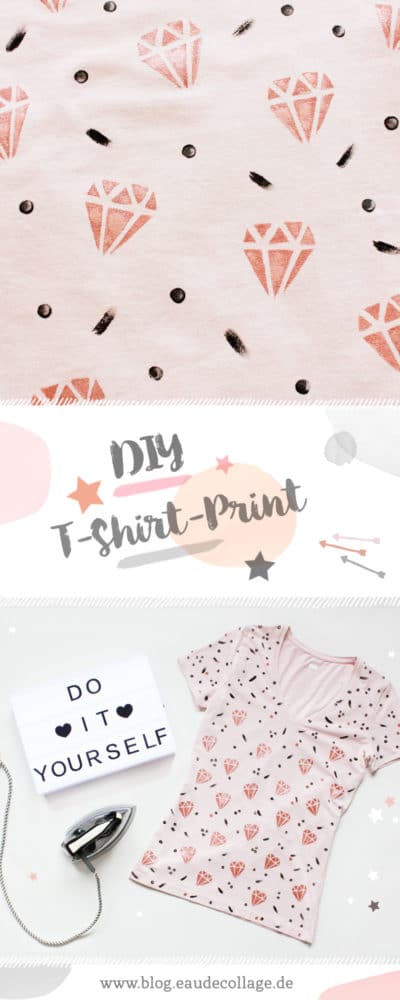 DIY T-SHIRT BEMALEN MIT DIAMANT-KUPFER-PRINT eau de collage in Upcyclen, Basteln mit Kindern, Drucken - Druckvorlagen für Selbermacher, Kreativitätstechniken, Malen merken
