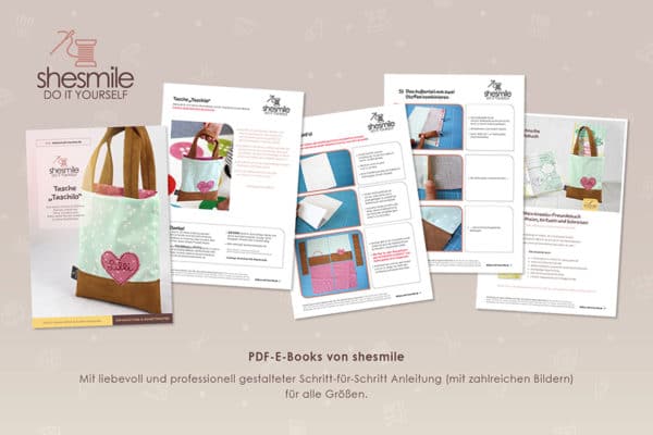 PDF-E-Books von shesmile: Diese leicht verständliche Schritt-für-Schritt-Anleitung mit vielen Fotos ist auch für Nähanfänger bestens geeignet. Die sehr ausführliche Fotoanleitungen begleitet dich bei jedem Schritt.