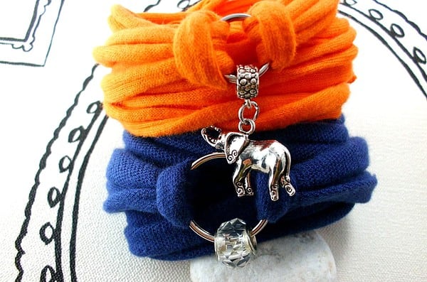 Zu einem Armband wird es dann, indem ihr einen Schlüsselring mit dem Textilarmband verknotet.