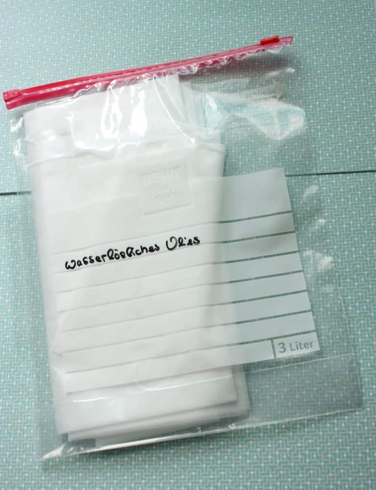 Eure Beutel sollten etwa DIN A4-Größe haben. Meine Beutel waren mit 3L angegeben.