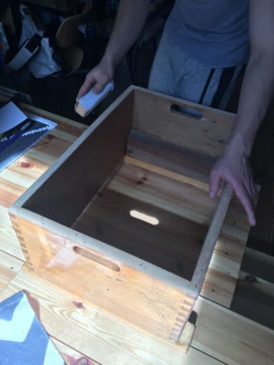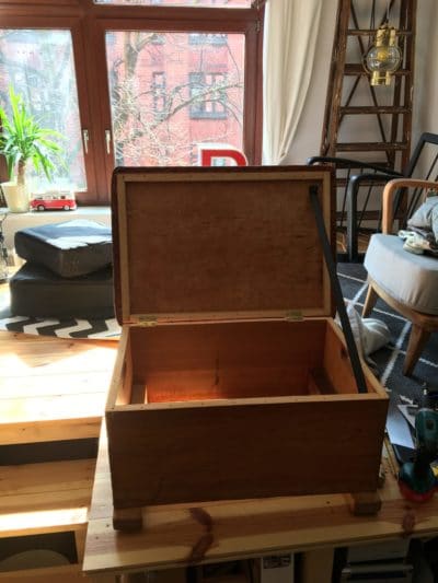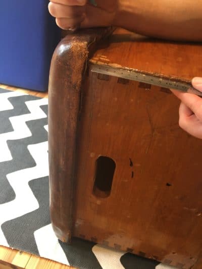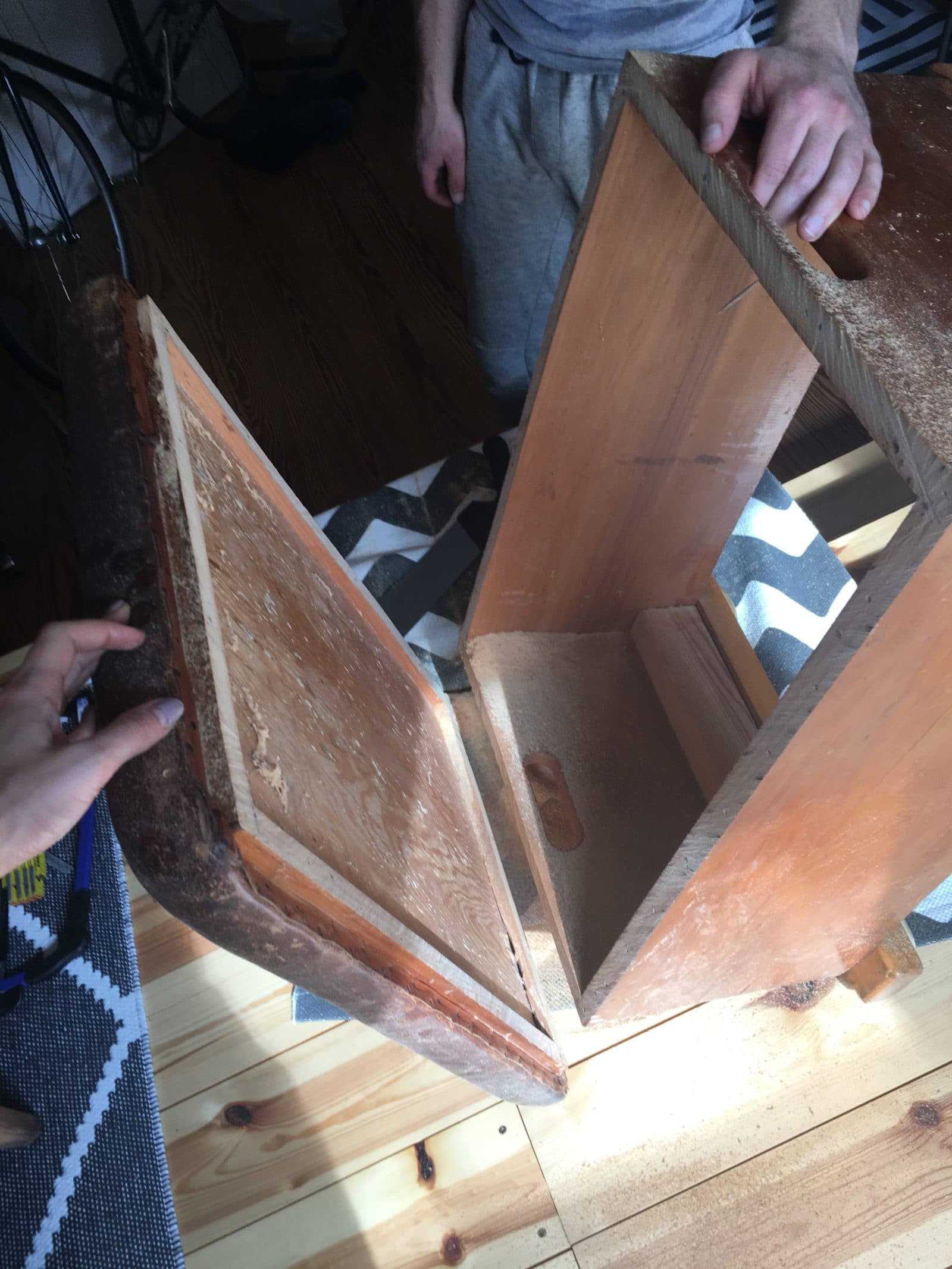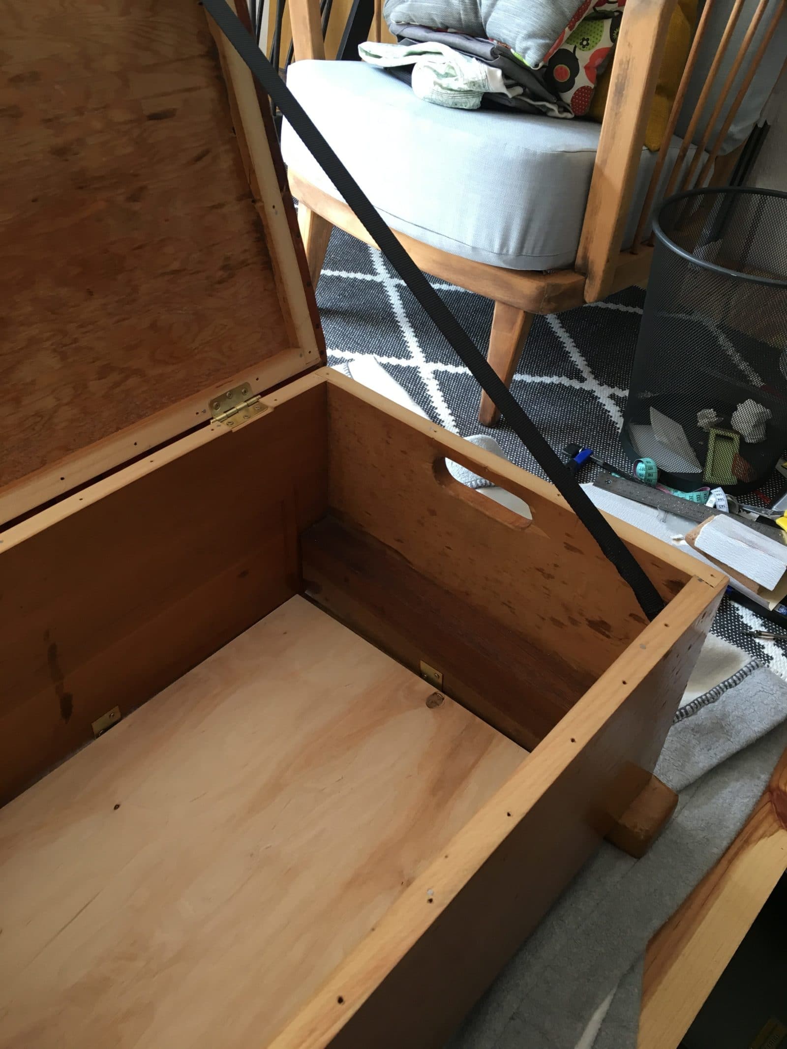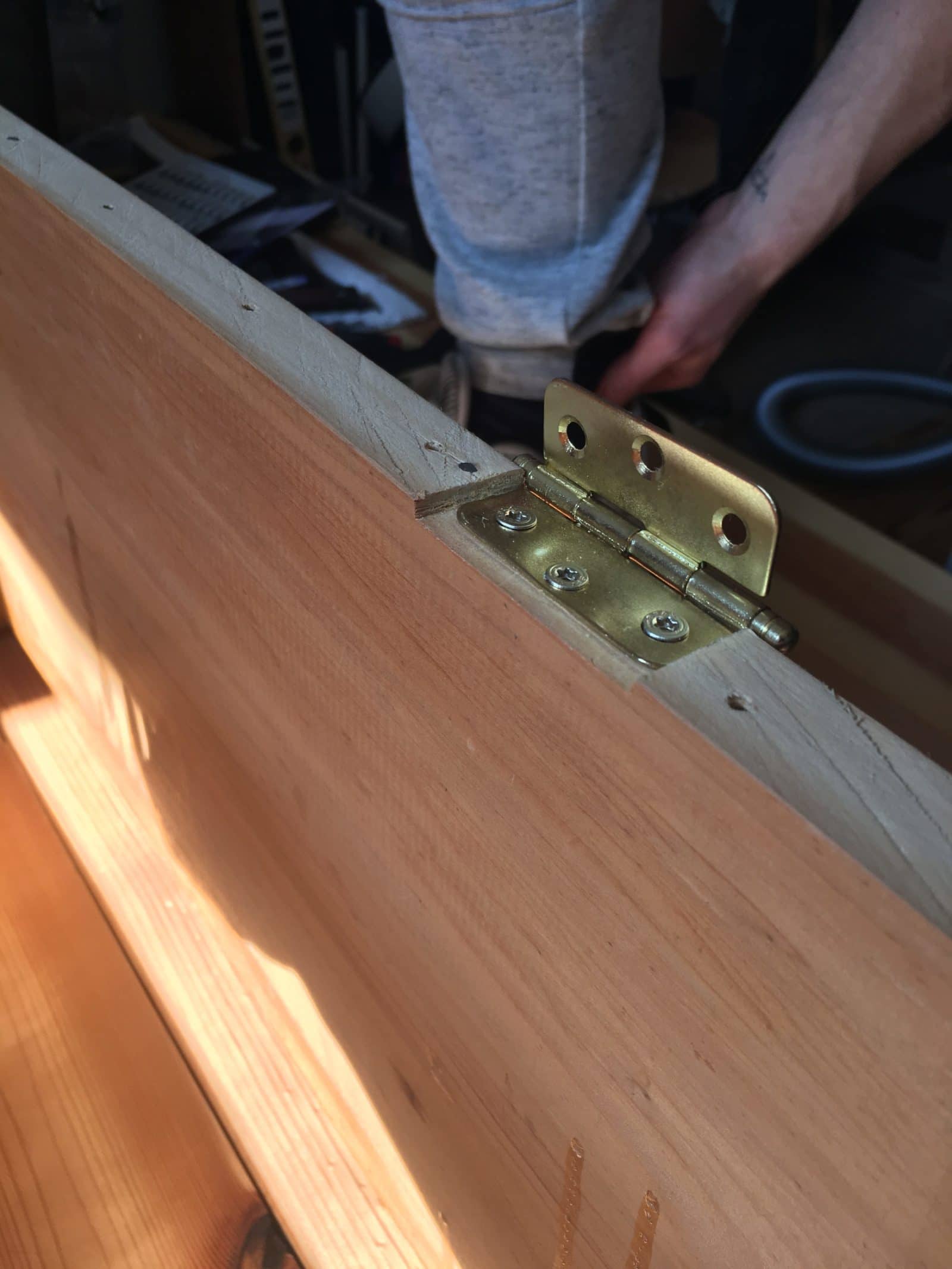 Leider verschenkt man so viel Platz, denn unter den Turnkisten ist ein riesiger Hohlraum. Deswegen haben wir, wie bereits bei der Bank aus dem großen Turnkasten, uns dazu entschieden das obere Teil des Turnkastens klappbar zu machen.