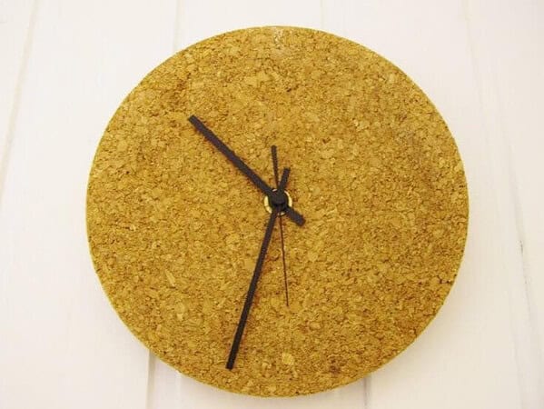 In unserem Beispiel haben wir eine einfache Korkplatte als Ziffernblatt genommen. Natürlich kannst du auch einfach eine Pappe, ein Stück Holz oder jedes andere Material nehmen. Beachte, dass bei du bei Holz, Keramik, Porzellan o. ä. eine Bohrmaschine benötigst um das Loch in der Ziffernblattmitte zu bohren.