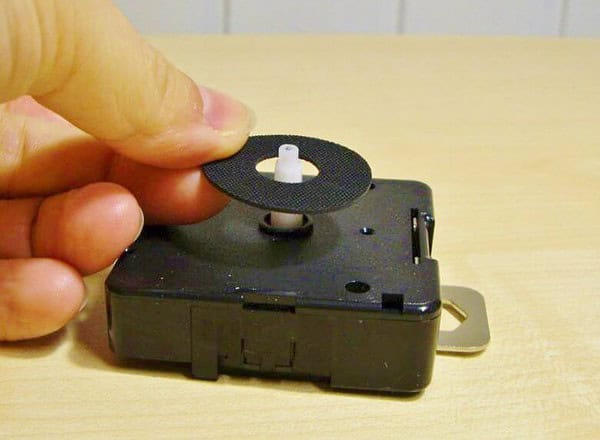 - Wenn die Uhr ohne Sekundenzeiger laufen soll, dann wird die Abdeckkappe auf die Zeigerwelle gedrückt. Falls ein Sekundenzeiger angebracht wird, wird keine Abdeckkappe benötigt. Einfach den Sekundenzeiger auf die Zeigerwelle aufdrücken.