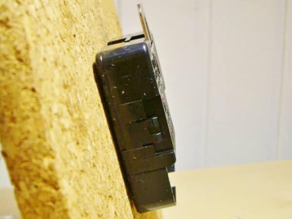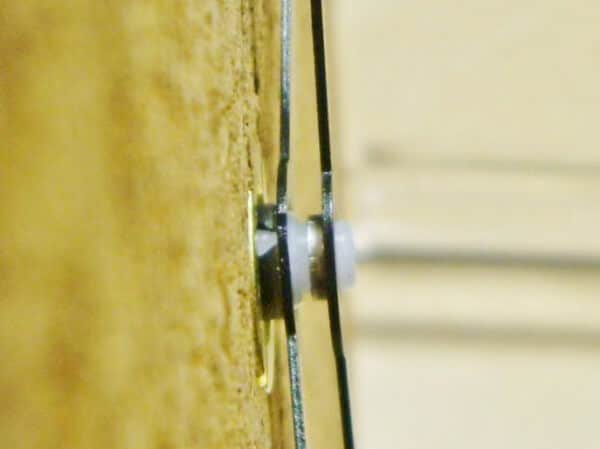 - Mit einem Messer das entsprechende Loch anhand der angezeichneten Lochgröße in die Platte bohren. Bei einer Holzplatte oder anderem Material hilft hier eine Bohrmaschine. Das Loch solange vergrößern bis die Schraube komplett durch passt.
