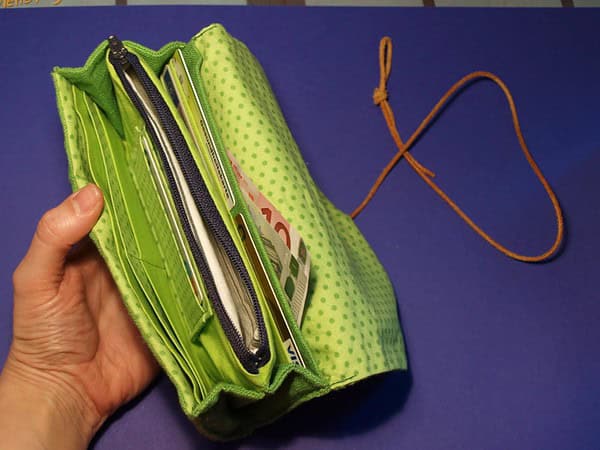 Bei meinem Portemonnaie habe ich dann noch ein paar Kartenfächer ergänzt, so dass es Platz für 10 Karten gibt.