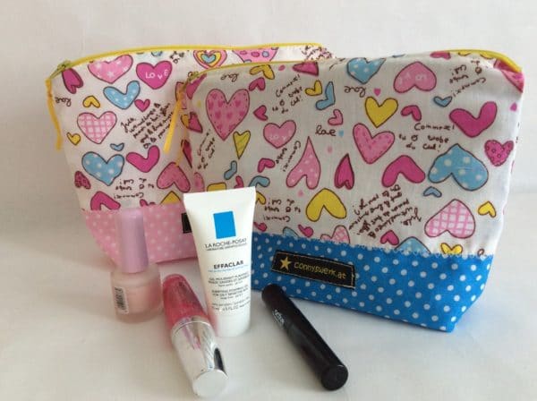 Diese kleinen Kosmetiktäschchen sind immer wieder eine nette Geschenkidee und vor allem schnell genäht (mit ein bisschen Übung ;-)). Ich habe euch hier schon mal eine komplette Fotoanleitung dafür eingestellt – hier der Link dazu: