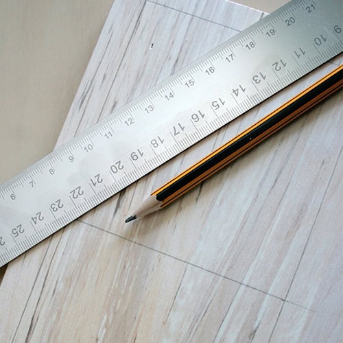 Zuerst müsst ihr die Größe der Untersetzer auf die Frühstücksbrettchen aufzeichenen. Damit nicht zuviel Abfall entsteht ist es sinnvoll immer zwei pro Bett auzusägen. Ich habe hier ein Quadrat von 10 x 10 cm verwendet.