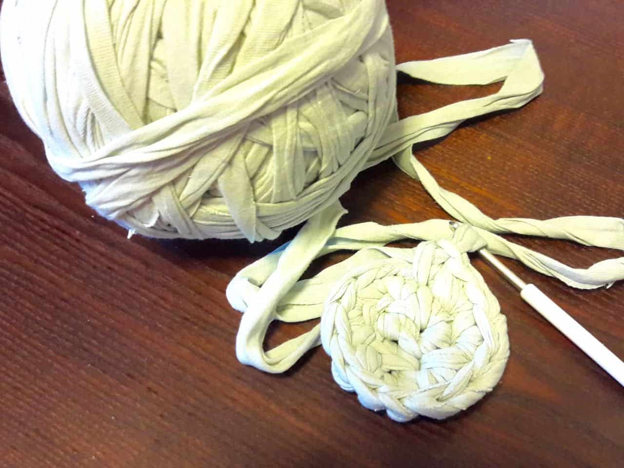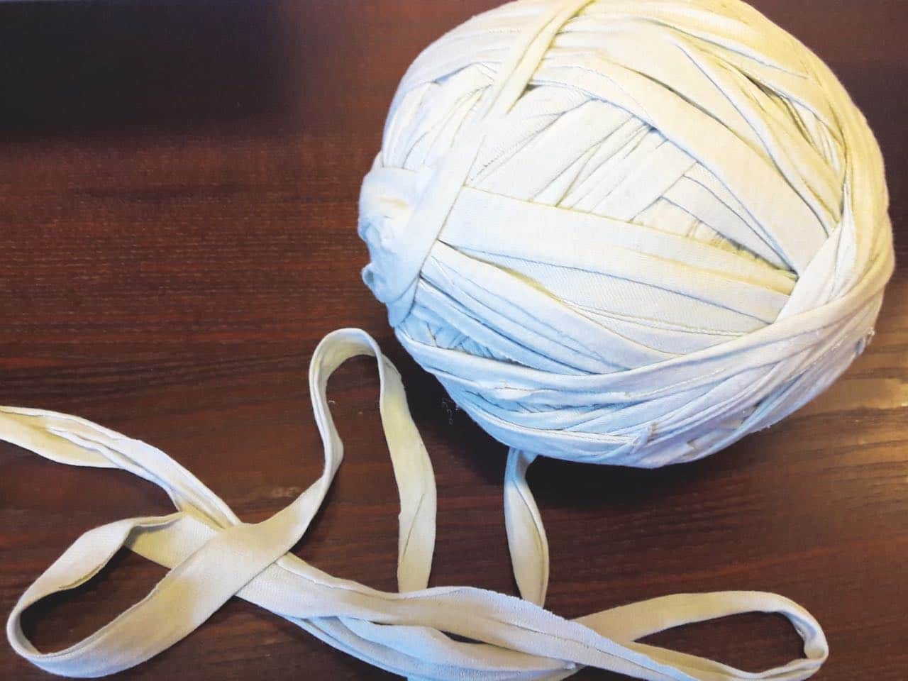 Ich habe hierfür Jerseygarn aus einem alten Spannleintuch selbst zugeschnitten.
