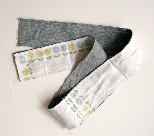 Die Streifen links auf links an den Längskanten zusammennähen, Tunnel stürzen.