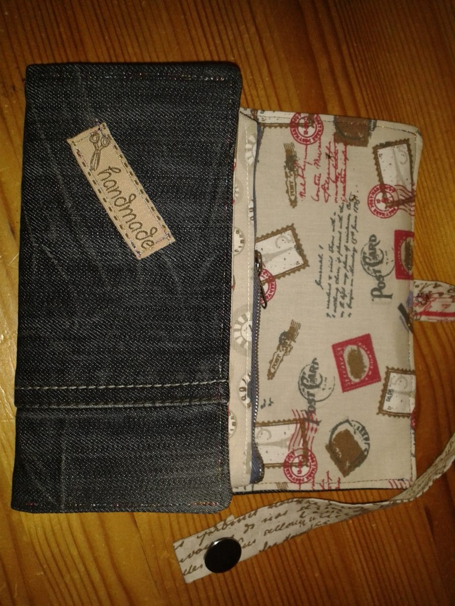 Hier habe ich eine alte Jeans für mein Portemonnaie geopfert. Dieses mal habe ich ein zweites Trennfach eingearbeitet und die Kartenfächer auf einem verdoppelt. Frau hat ja nicht nur 4 Karten