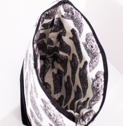 Alles fängt natürlich mit einem Foto an. Dieses verarbeite ich zu einem stilisierten Bild – ganz nach Wunsch des Auftraggebers. In diesem Fall habe ich den Hund in ein Art gezeichnetes Schwarz-Weiß-Bild verwandelt. Ein buntes Bild oder eine 1:1 Fotoabbildung wären genauso möglich. Dann versende ich das Bild an eine Stoffdruckerei.