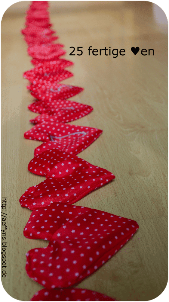 Jedes Jahr aufs Neue gibt es Anlässe, die zum Schenken auffordern. Geburtstag, Weihnachten, Jubiläum – etwas herausfordernder,Geburt oder Hochzeit oder ganz aktuell VALENTINSTAG. Auf die Frage, was gewünscht ist, bekommt man meist „nichts“ zur Antwort, womit oftmals BARGELD gemeint ist ;-) Das heißt, eine kreative Verpackung, neben Origami und vorgefertigten „bitte-den-Geldschein-in-diesen-mini-Umschlag-hinein-tun-Karten“, für das Geldge- schenk muss her! Da ich Wimpelketten sehr mag kam mir die Idee, einfach Herzchen anstatt Wimpel aneinander zu reihen – gefüllt mit 1€-Stückchen. So haben die Beschenkten noch ein wenig Freude am Geschenk :)