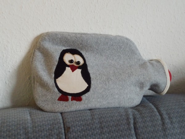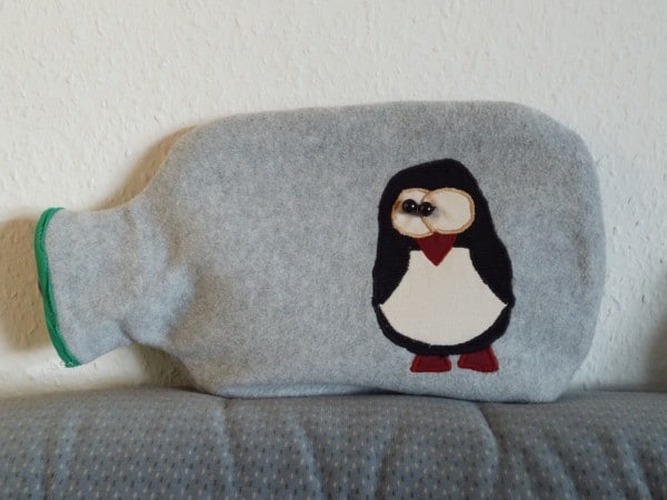 Wärmflaschenhülle mit Pinguinapplikation