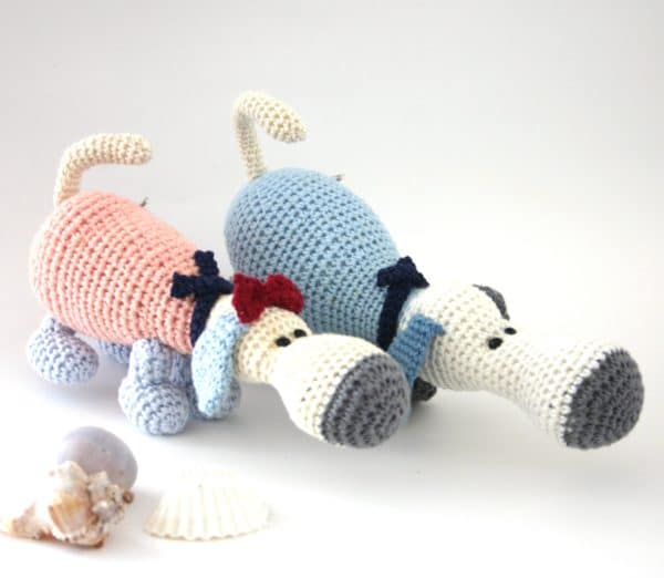 Wieder zwei meiner kleinen Kreaturen aus dem Watt. Diesmal der Wattwauwau. Er hat eine lange Nase wie ein Wattschwein und bewegt er sich schnüffelt durch das Watt. Immer auf der Suche nach einer Leckerei, die ein Badegast verloren hat. Hier die Häkel-Anleitung für Wattwauwau und Wattwauwauline. Sie sind ca. 18cm lang, aber mehr dazu in der Anleitung. Die findet ihr wie immer hier auf meiner Seite. Ganz am Ende vom Text gibt es einen Gratisdownload. Die Wattwauwaus lassen sich gut aus Resten häkeln. Die anleitun gist wie ein E-Book geschrieben und enthält viel Bilder.
