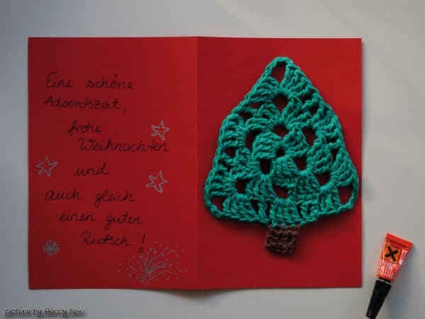 Weihnachtskarte mit Häkel-Baum