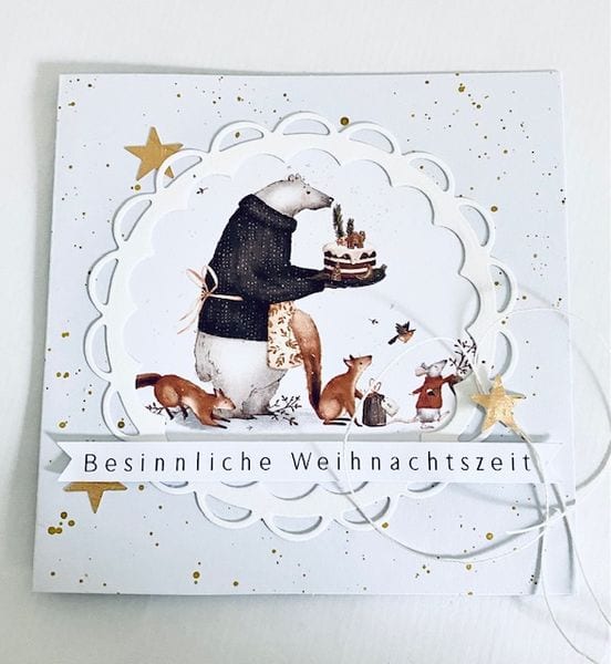 Meine neue Leidenschaft ist das Werkeln mit Papier. Und momentan liebe ich es Glückwunschkarten zu basteln. Natürlich momentan im weihnachtlichen Stil. Ich zeige euch ein paar meiner Werke, vielleicht kann ich ja damit ein paar von euch inspirieren. Ich gestalte meine Hintergründe meist selber und arbeite viel mit meinen (gefühlt 1000) Stempeln, die ich teilweise coloriere.