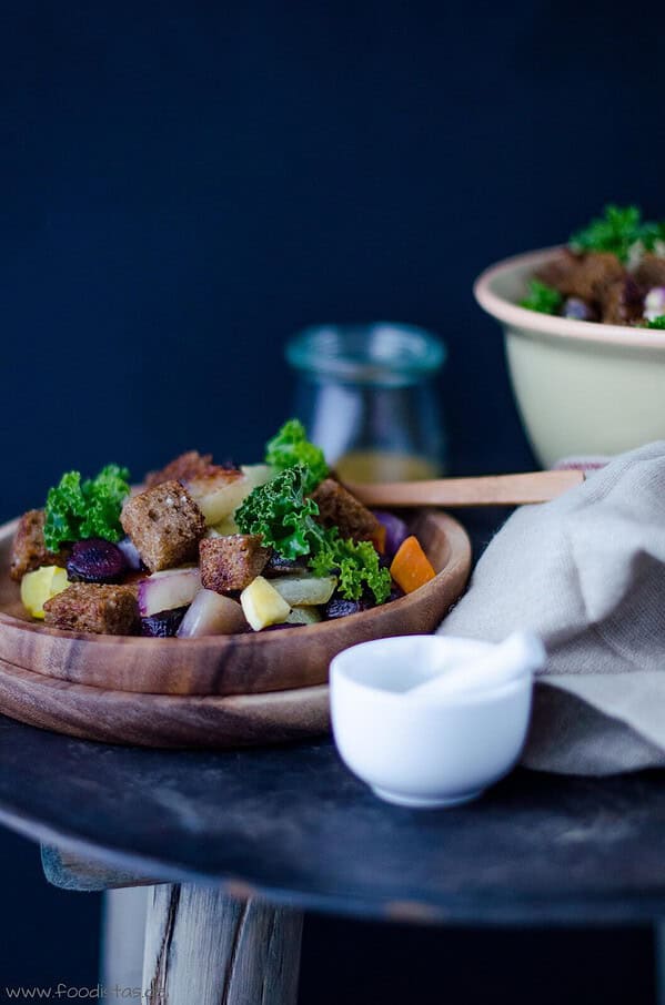 Wenn es eine Zutat für viele unserer Rezepte gibt, dann ist es Brot! Brot in allen erdenklichen Variationen! Heute mitgebracht haben wir euch einen italienischen Klassiker – Panzanella, einen Brotsalat. Jedoch nicht wie im Sommer mit frischen Tomaten, sondern mit dem feinsten Wurzel- und Knollengemüse das es gibt.