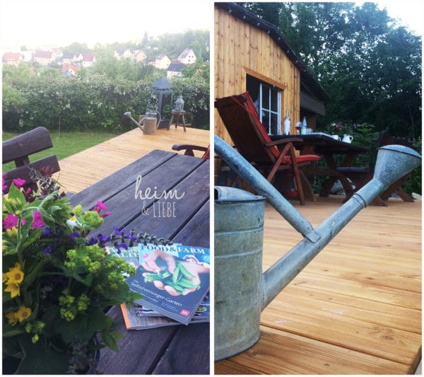 Das Gefühl von sonnenerwärmtem Holz unter meinen Füßen, wenn ich die Balkontür öffne, erfüllt mich mit purem Glück. Unsere Terrasse aus Holz ist endlich fertig und verwandelt unsere Gartenhütte in ein richtig kleines Paradies. Auf meinem Blog teile ich meine Erfahrungen , die wir beim Bau der Terrasse aus Holz gemacht haben: http://heimundliebe.de/terrasse-aus-holz-selber-bauen/
