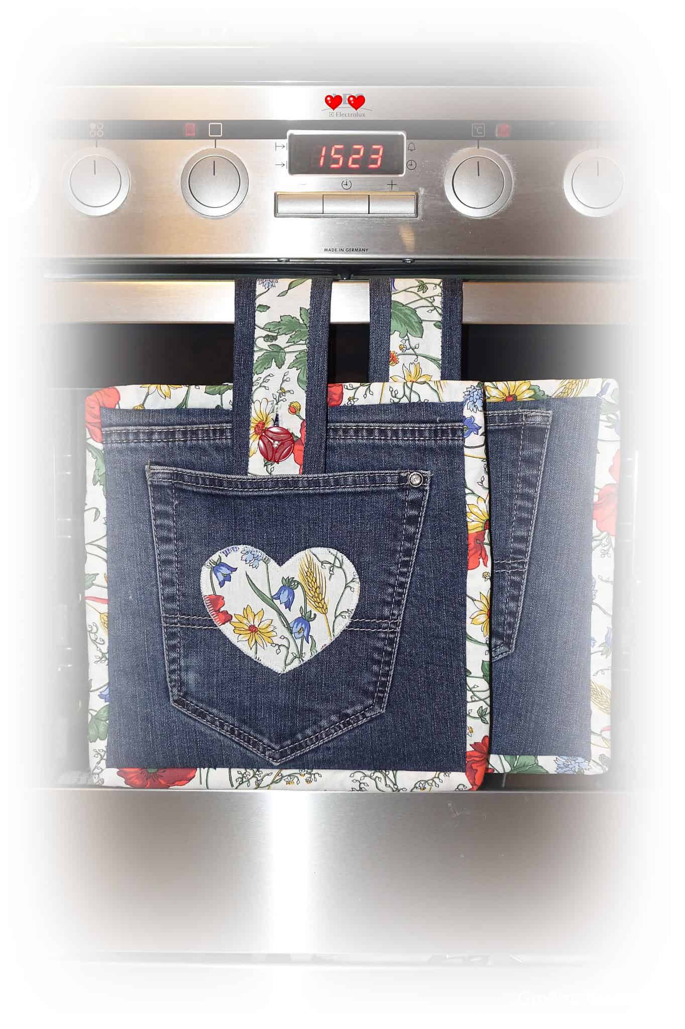 Wohin mit der Rückseite / Gesäßbereich von alten Jeans ? Näh daraus Topfhandschuhe / Topflappen !