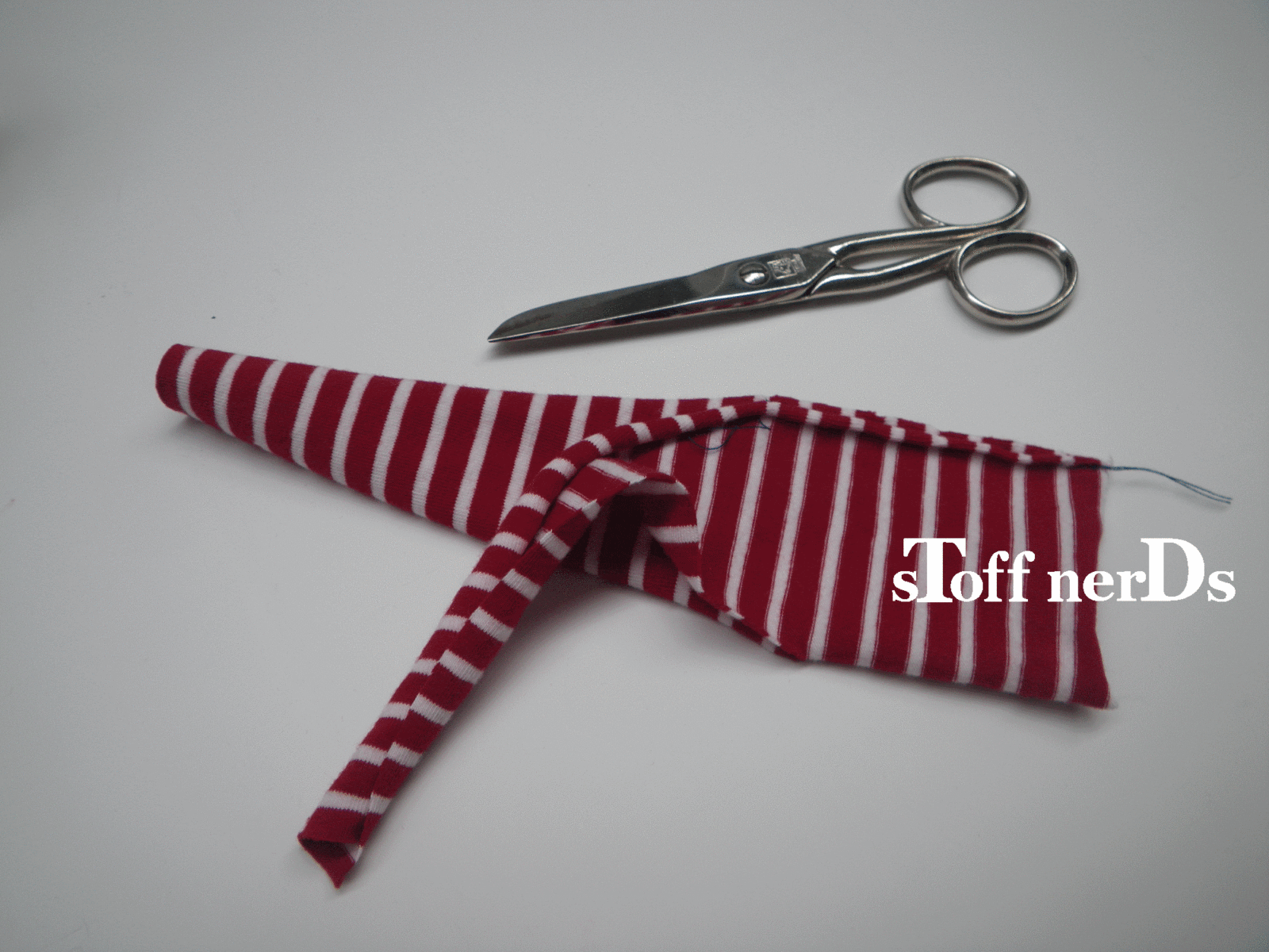 Sobald ihr eure Nähte beendet habt und der Faden vernäht ist, könnt ihr den Stoff auf die rechte Seite stülpen.