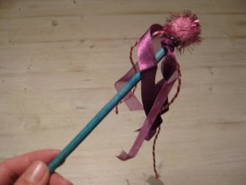 Das ganze geht ganz fix und macht anscheinend süchtig. Wir haben nämlich noch zwei Nachbarsmädels zum Basteln eingeladen (also 3 Zaubermädchen) und am Ende haben wir 14!!! Zauberstäbe gebastelt. Für die Kindergartenfreundinnen, Cousinen, für sich selbst,…