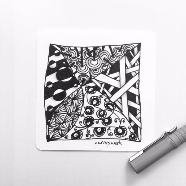 Ich habe erst unlängst von einer Freundin über Zentangle erfahren und musste dies sogleich ausprobieren. Es hat mich sofort in den Bann gezogen, denn es macht mega Spaß. Es ist zwar keine Anleitung von mir (dafür gibt es viele auf youtube oder in Büchern), aber ich möchte euch diese, für mich neue, total kreative Beschäftigung nicht vorenthalten :-)