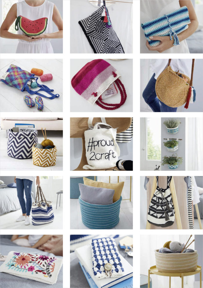 Mit von der Partie: Beutel, Handtaschen, Clutches, Handytasche, Strandtasche, Shopper und Körbe in diversen Größen. Hier die einzelnen Projekte in der Übersicht: