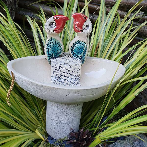 Die größte Schar in meinem Kabinett stellen die Alexitätenvögel. Sie sind von verschiedenen Vogelarten inspiriert, um immer wieder neue, eigen- und einzigartige Charaktertypen zu erschaffen. Es gibt sie für drinnen und draußen, als Zaunhocker, Stangenvögel, Stockvögel oder als sesshafte Zeitgenossen, die gerne Mal in der Partyschale oder Vogeltränke Platz nehmen.