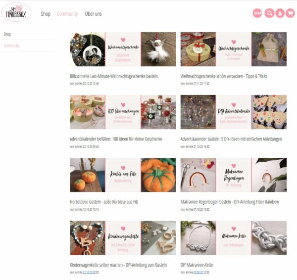 In unserer Tinkerbox Community findest du tolle Tipps & Tricks rund ums Thema Basteln. Für jeden Anlass zeigen wir dir tolle Inspirationen, die du ganz einfach Schritt-für-Schritt selbst nachbasteln kannst. Weihnachtliche Geschenkideen, angesagte Schmucktrends, ausgefallene DIY Deko und vieles mehr wartet darauf von dir entdeckt zu werden. Schau vorbei und tinker mit uns!