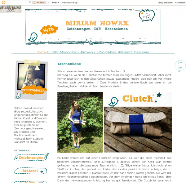 Miriam Nowak – Zeichnungen DIY Rezensionen 03.06.2013 von Miriam Kategorie: Kreativblogs Stichwörter: DIY, Nähen, Rezensionen, Zeichnungen http://miriamnowak.blogspot.de/ merken